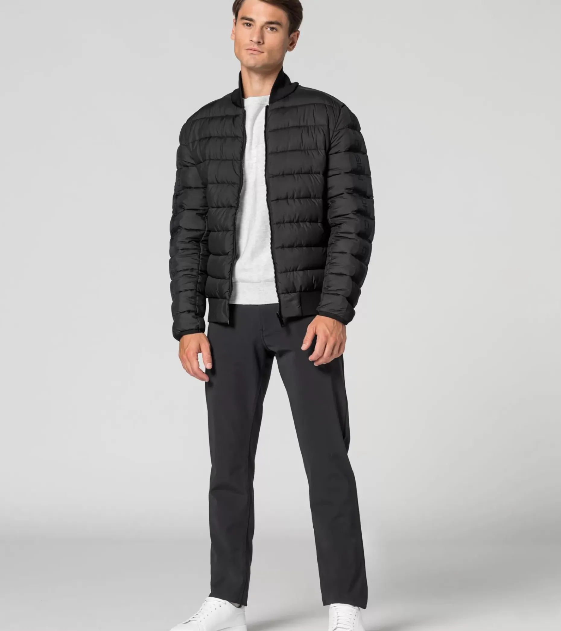 Piu Leggerezza In Inverno: La Giacca Leggera Porsche Design Combina La Piu Recente Tecnologia Di Produzione Con Un Design Esclusivo. Un Dettaglio Spicca Su Tutti Gli Altri: L’Estrema Leggerezza, Ottenuta Attraverso Un’Imbottitura Senza Piumino, Realizzato Con Una Speciale Macchina Per L’Imbottitura. All’Esterno Si Nota La Piccola Trapuntatura Orizzontale, All’Interno La Trapuntatura A Sandwich E Le Due Tasche. Un Colletto In Maglia Circolare Ripiegabile E Polsini Elastici Sulle Maniche Proteggono Dal Freddo. Completano Il Look Le Zip Appositamente Realizzate Ele Fasce In Gomma Con Il Logo Porsche Design Sulle Spalle E Sulle Maniche.