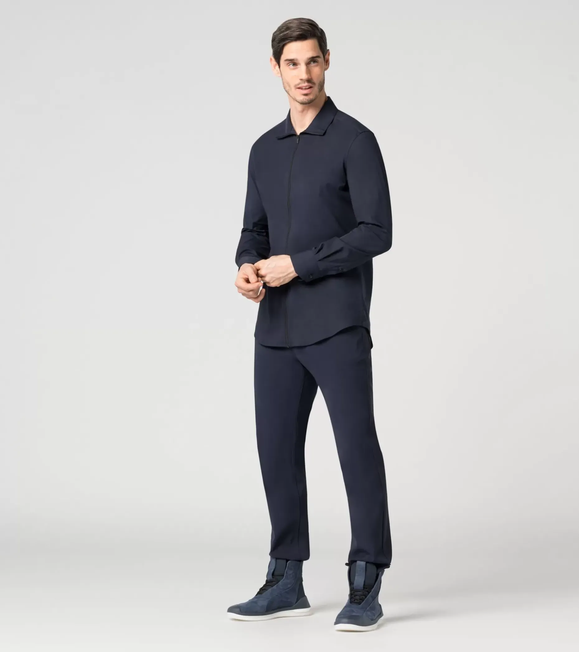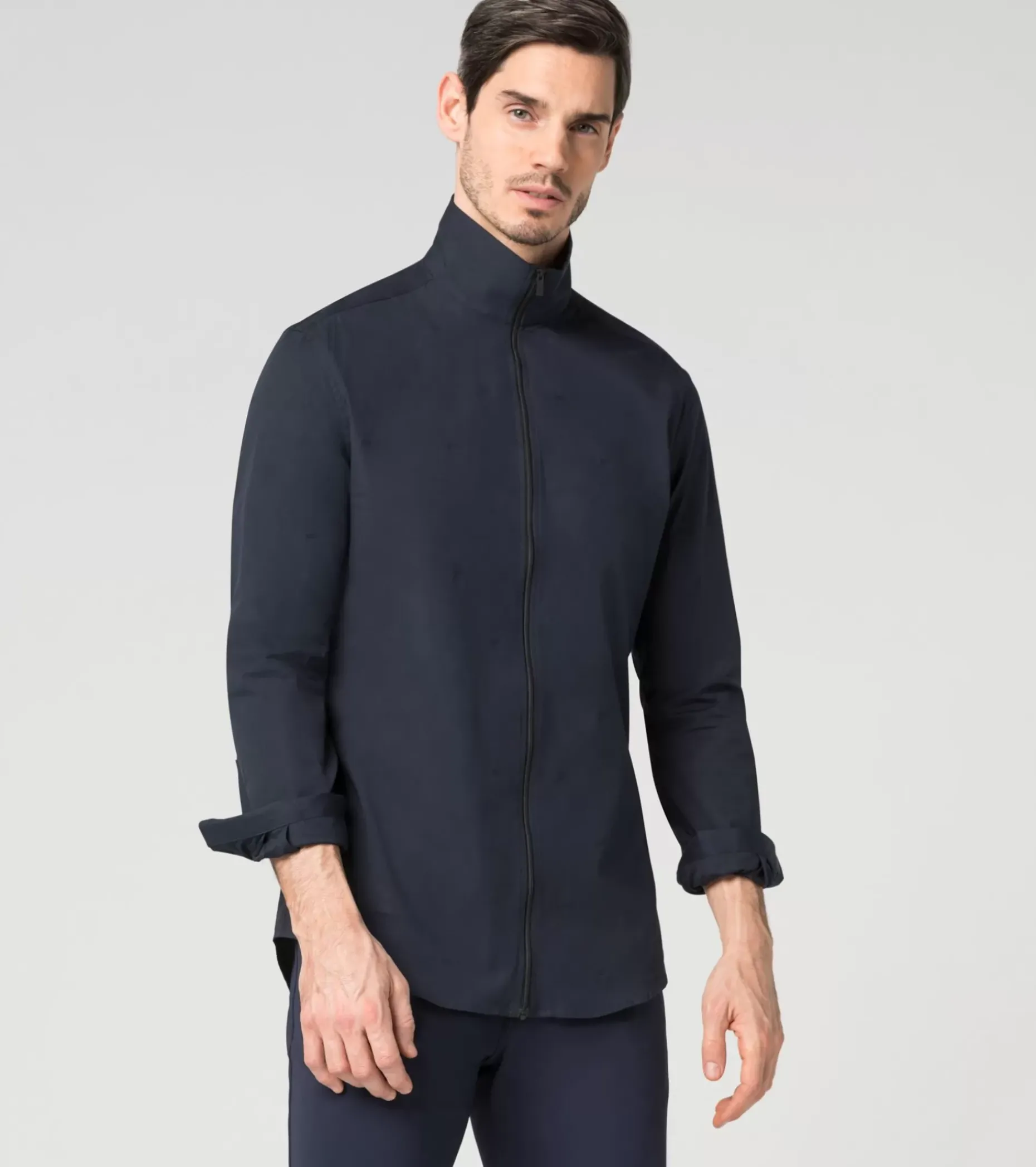 Da Lontano Una Camicia Slim Con Colletto Piccolo; Da Vicino La Porsche Design Zipped Pd-Icon Shirt Rivela Le Sue Straordinarie Caratteristiche Estetiche. La Camicia Da Uomo, Dal Taglio Slim E Pulito, E Realizzata In Jacquard Di Cotone Elasticizzato, Con Sottili Icone Pd Intessute In Tono Su Tono. Carattere Esclusivo Ma Discreto. Una Cerniera Nera A Tutta Lunghezza, Dotata Di Pendente Con L’Icona Pd E La Caratteristica Piega Posteriore Porsche Design Perfezionano Il Look Moderno E Individuale. Una Camicia Non Comune, Che Rappresenta Una Dichiarazione Di Stile.